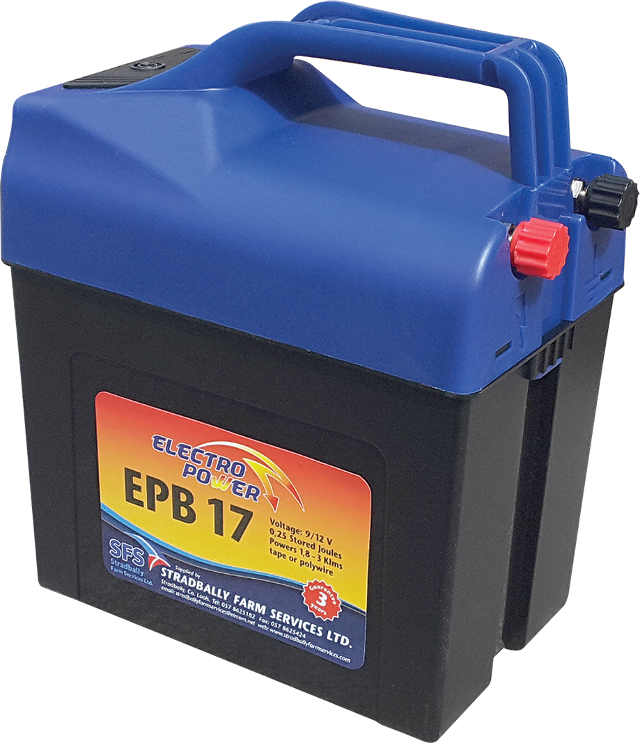 • Powers 1.5 – 2 km of polywire and tape.